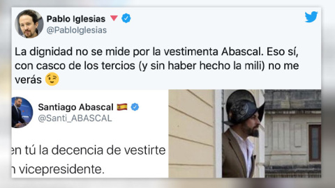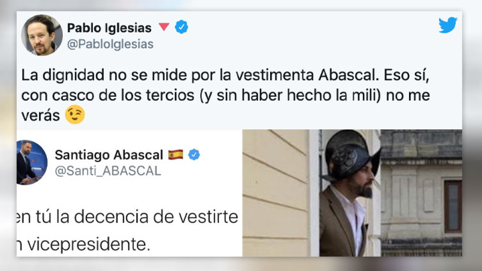La respuesta de Iglesias, llegó así: con una foto de Abascal con el casco de los tercios. Los tuiteros aún se están riendo: